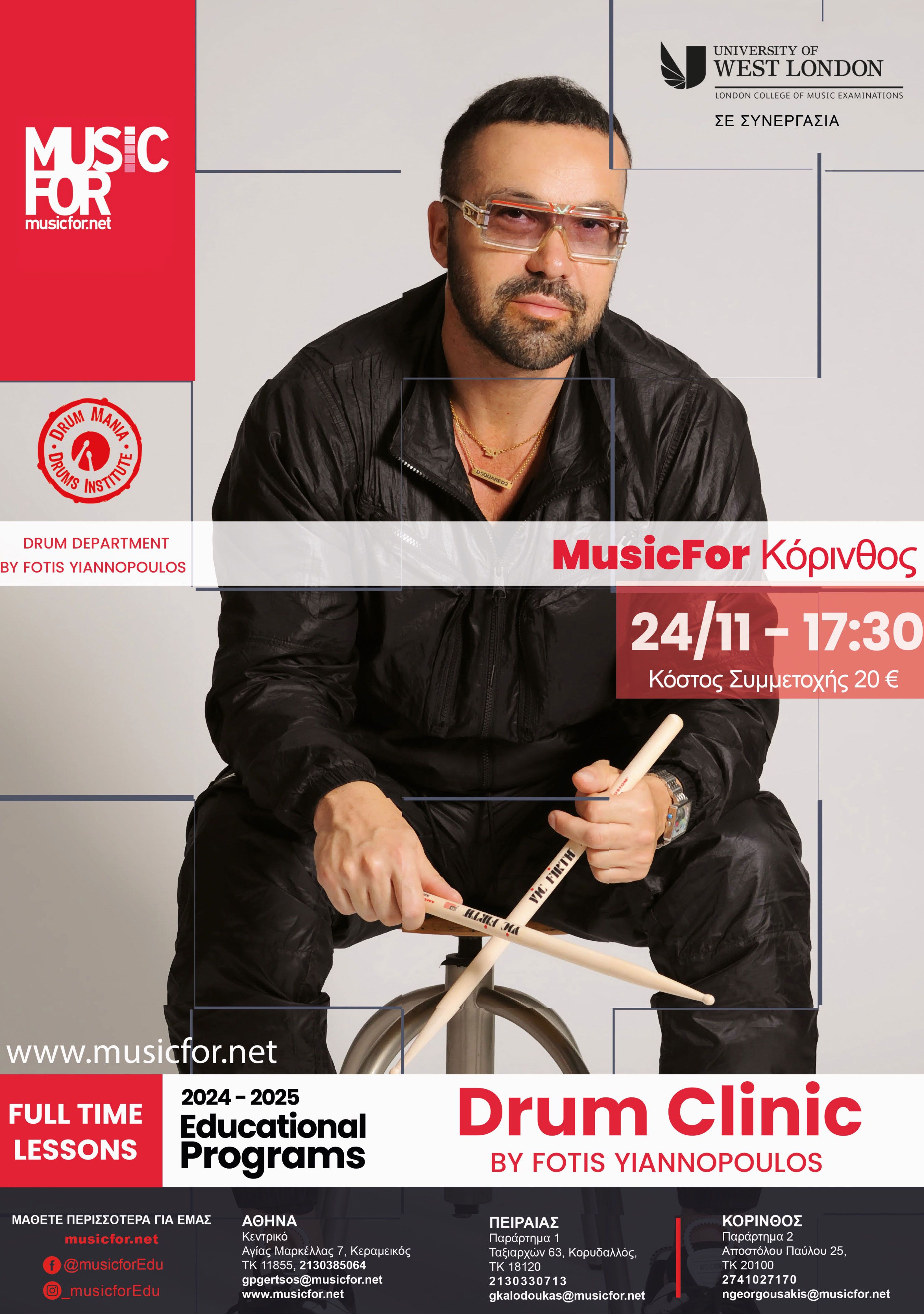 Νέος ειδικός κύκλος σεμιναρίων που απευθύνεται σε όλους τους drummers (και όχι μόνο!) που θέλουν να γνωρίζουν όλη την βασική διαδικασία παραγωγής του περιεχομένου τους (video clips, ηχογράφηση & μίξη, επεξεργασία εικόνας/διαφημιστικού υλικού κλπ) αλλά και πως να το διανέμουν στον ιστό και στα social media (ιστοσελίδες, social media, live streaming, διανομή σε μουσικές πλατφόρμες).